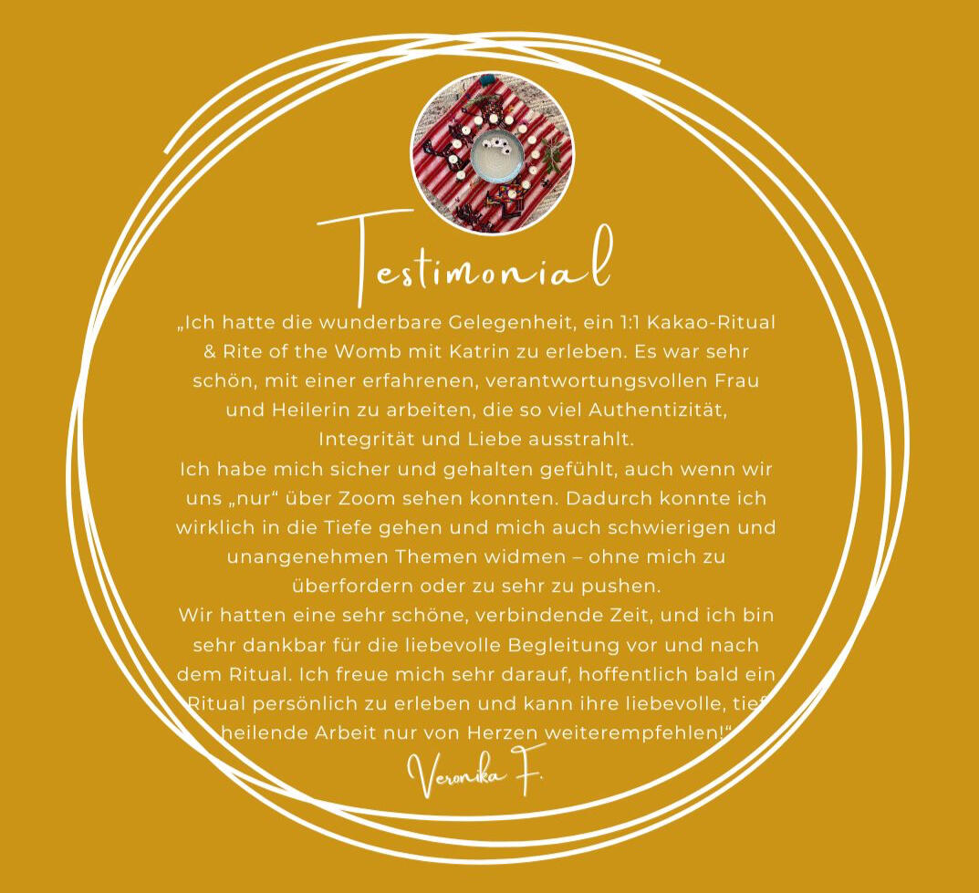 GebärmuttergesundheitEin gesunde, starke Gebärmutter ist nicht nur die Grundvoraussetzung für's Kinderkriegen. Ein unserer Kultur ist immer noch wenig darüber bekannt, wie wichtig ein gesunder Schoßraum für unser Leben als Frau ist.Für viele Frauen ist die Welt "da unten" noch mit Scham und Schuld verbunden. Die Regelblutung - in Wirklichkeit ein Segen, der uns erlaubt, uns jeden Monat energetisch und physisch zu reinigen (ist das nicht fantastisch?!) - wird oft negativ gesehen und schmerzhaft erlebt.Ich unterstütze dich dabei, eine neue, nährende, liebevolle Beziehung zu deinem Schoßraum aufzubauen - die beste Voraussetzung für ein gesundes Frauenleben, um das Nest für ein Baby zu bereiten (zum Beispiel, wenn du einen unerfüllten Kinderwunsch hast), für kraftvolles Mutter-Sein und für das Leben als Weise Ältere.Das kraftvolle, wunderschöne Ritual "Rite of the Womb" biete ich online und persönlich an. Melde dich bitte für Details.